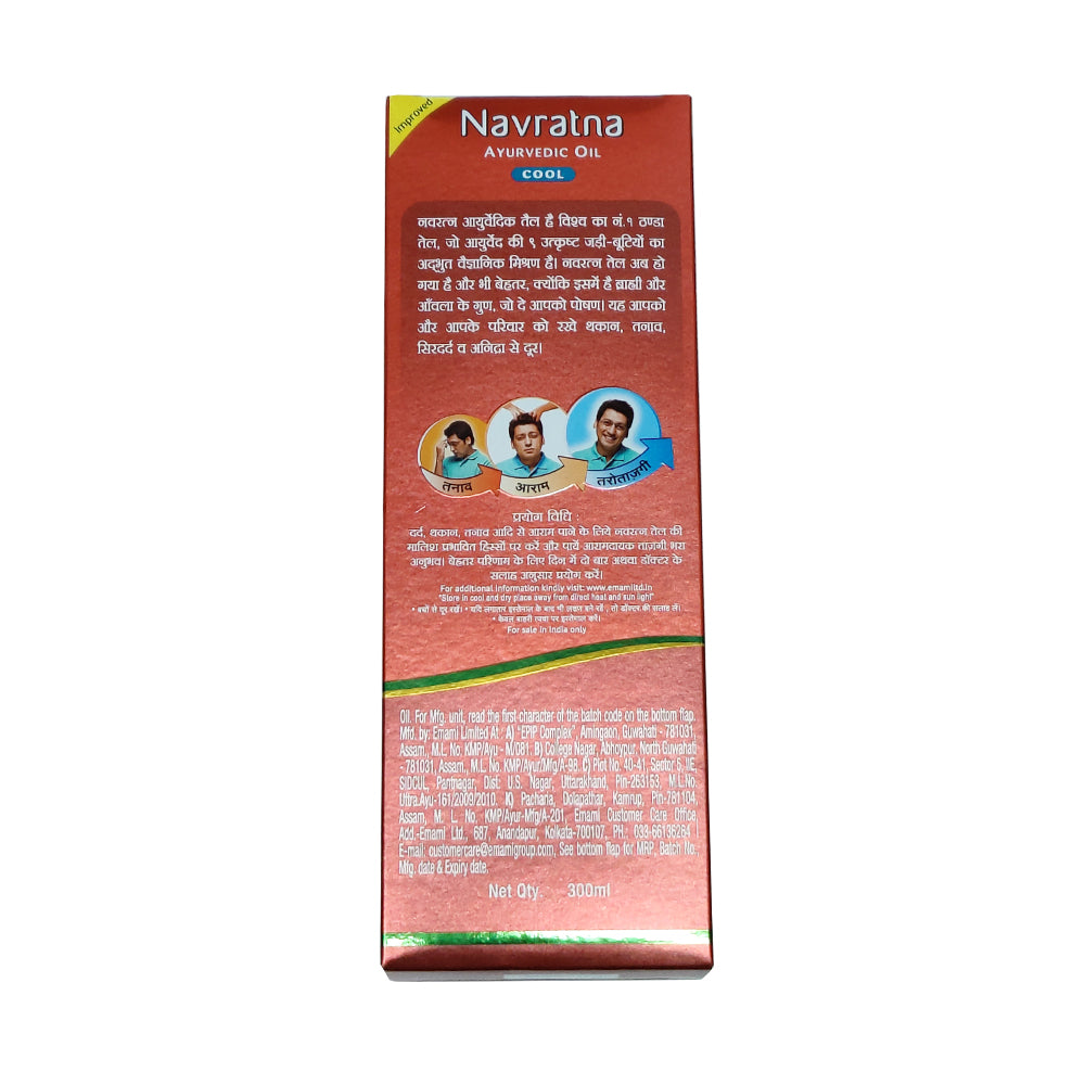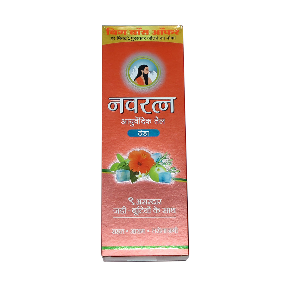 Navratna Ayurvedic Cool Hair Oil provides relief from daily mental and physical stress – and its related symptoms like headache, fatigue, tension, sleeplessness, and more. Navratna Ayurvedic Oil also has a therapeutic cooling effect which provides relief from daily mental and physical stress. It also has anti-dandruff properties and is a great hair oil for massage.