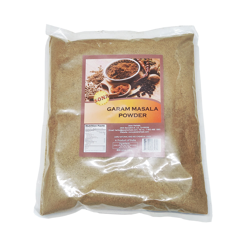 Garam Masala is a spice blend of cinnamon, mace, peppercorns, coriander seeds, cumin seeds, and cardamom pods that are toasted in pan, which releases the spices aromatic flavors, and then ground into a powder.