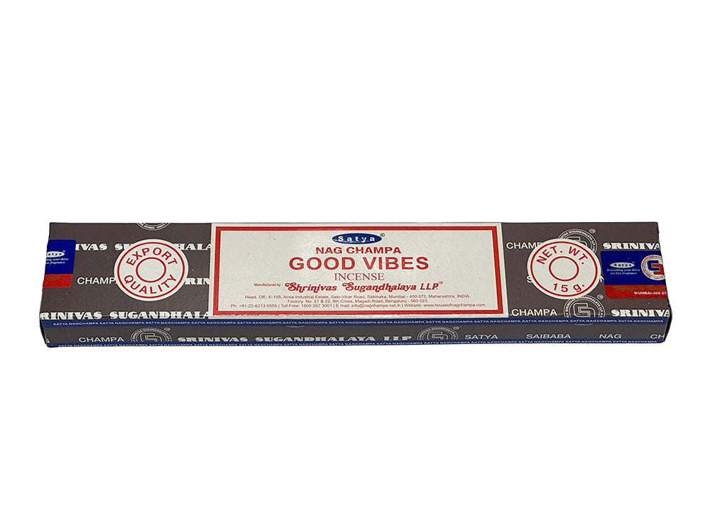 Experience the power of positive energy with Good Vibes Incense by Satya Sai Baba. Handcrafted with care, each stick releases a soothing fragrance that envelops your space with tranquility and harmony. Elevate your senses and invite good vibes into your life with the enchanting aromas of Good Vibes Incense.