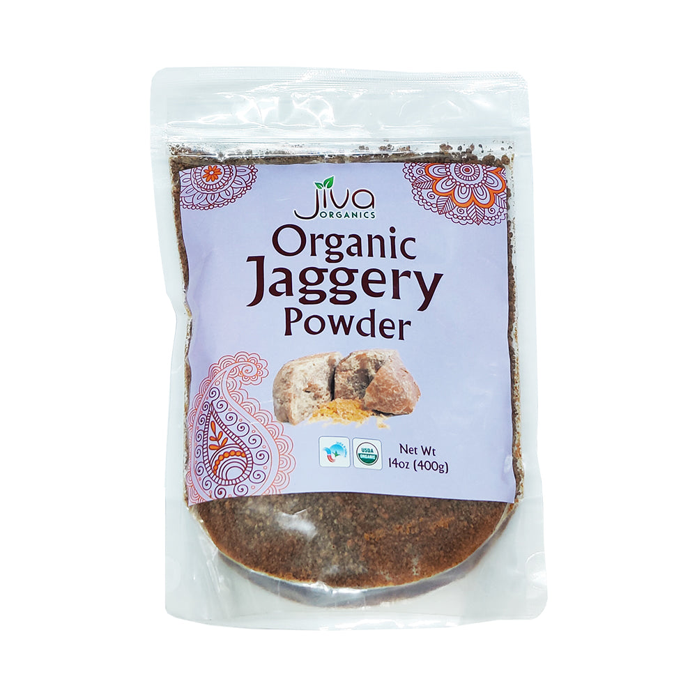 Jaggery is a superfood derived from boiling and evaporating pure sugar cane juice. It is unrefined and nutritious with vitamins and minerals such as magnesium, manganese potassium, calcium, zinc, and morel. Jaggery, also known as Gur, has been used as a sweetener for centuries and it's a great substitute for any sweetener in your coffee, tea, or any other recipe that calls for sugar. Jiva Organics Jaggery is produced without the use of chemicals, fertilizers, or preservatives and is a natural product.
