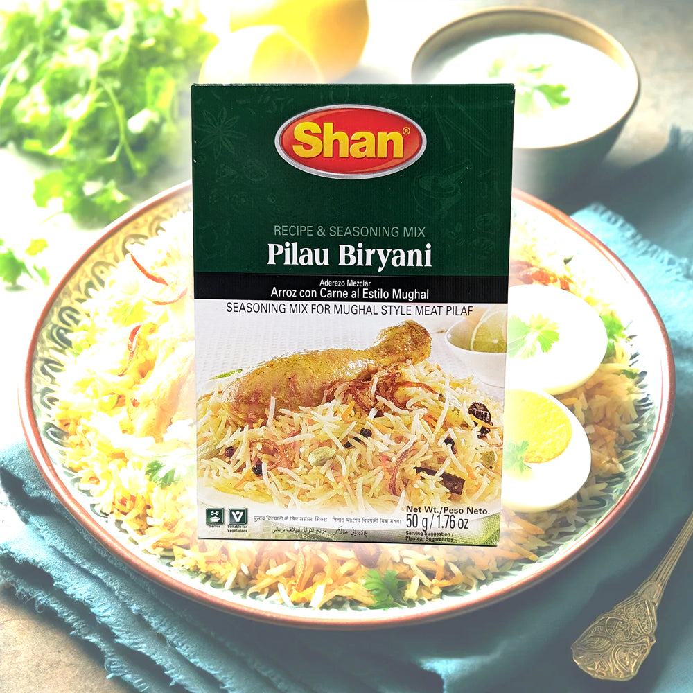 Enhance the flavors of your homemade biryani with Shan Pilau Biryani Spice Mix. Made with a blend of halal-certified spices, including ginger, cumin, bay leaf, cardamom, cinnamon, clove, coriander, and turmeric, this mix will add a depth of flavor to your dish. Prepare a delicious and authentic biryani with ease using Shan Pilau Biryani Spice Mix.